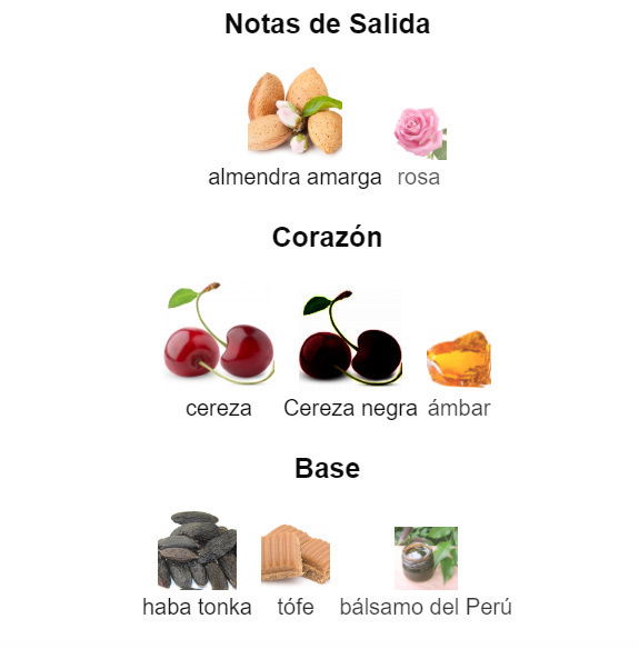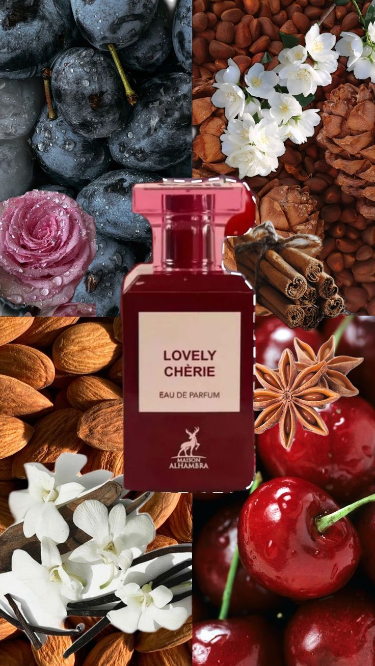 Lovely Chèrie de Maison Alhambra es una fragancia de la familia olfativa para Hombres y Mujeres. Las Notas de Salida son almendra amarga y rosa; las Notas de Corazón son cereza, Cereza negra y ámbar; las Notas de Fondo son haba tonka, tófe y bálsamo del Perú.